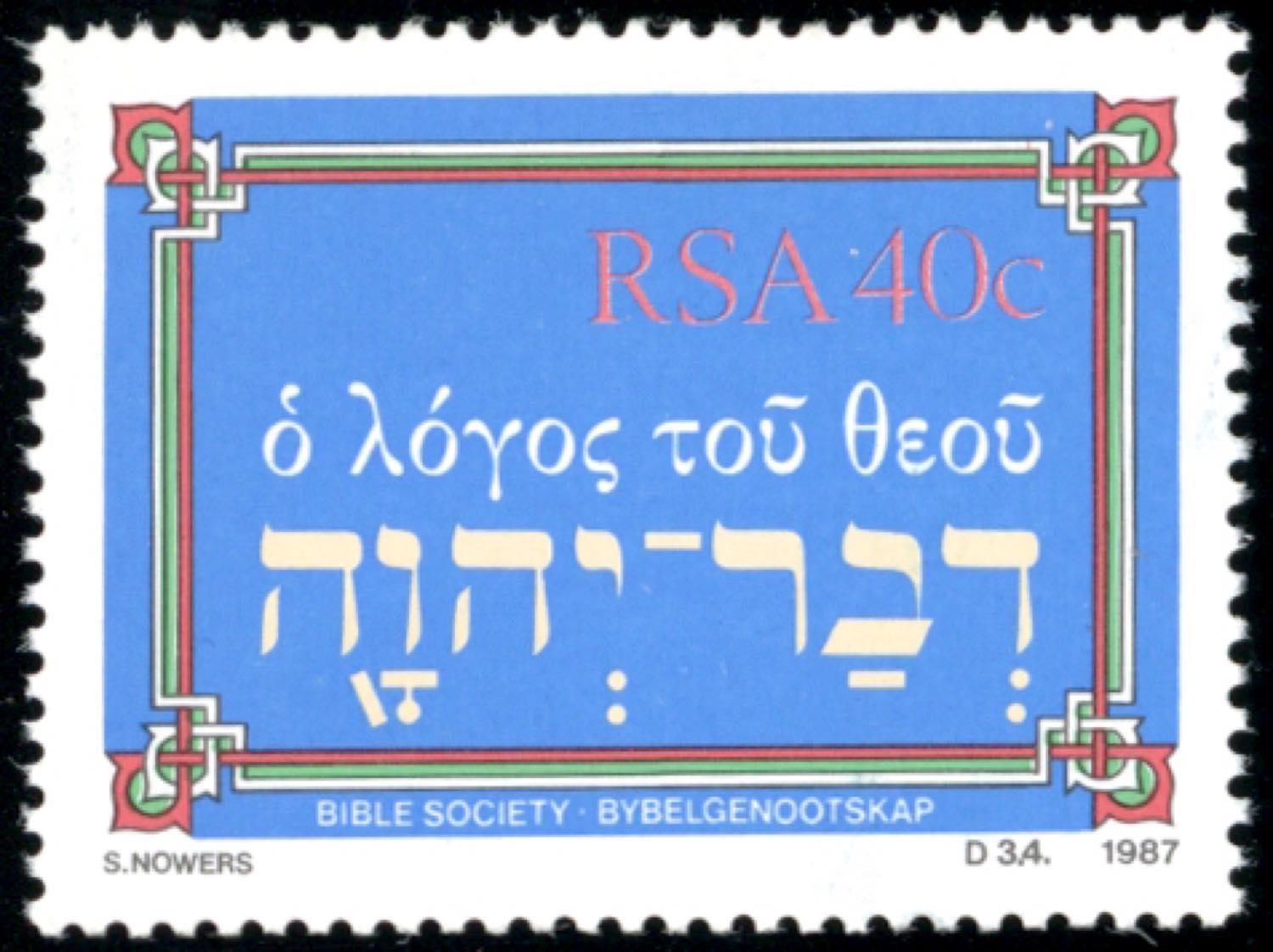 Lotto 2914 - SOUTH AFRICA 1987 - 40 cent. "Word of God", Bible Society, ...