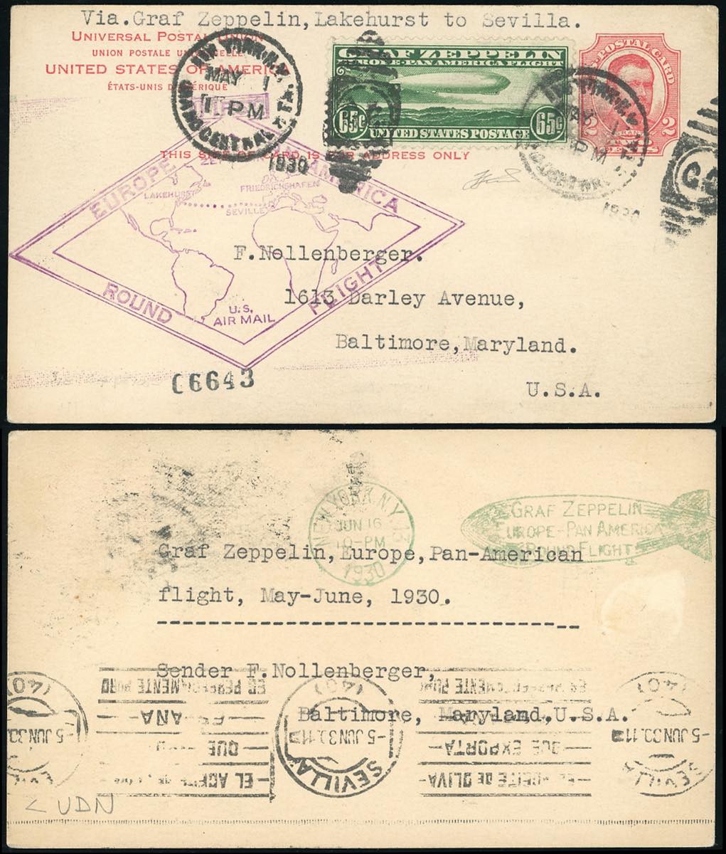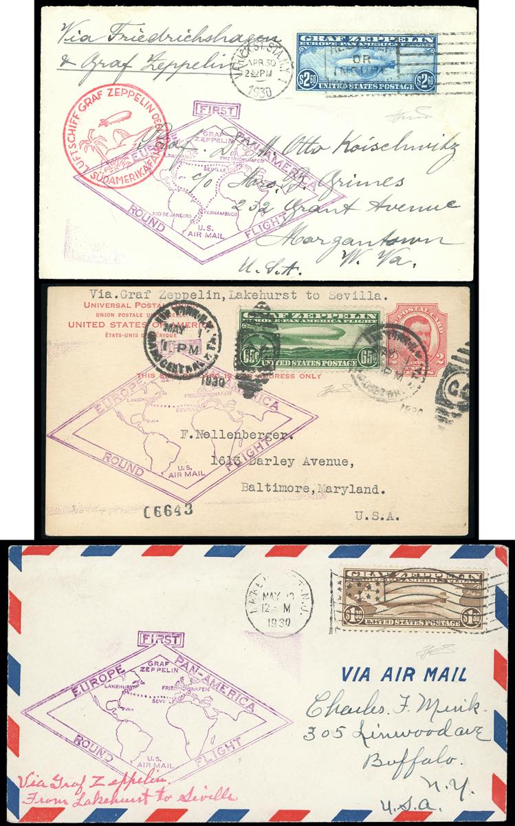 STATI UNITI D'AMERICA POSTA AEREA 1930 - Zeppelin, serie completa (Unificato A13/A15), perfetti, su tre aerogrammi con il bollo speciale ... Leggi tutto