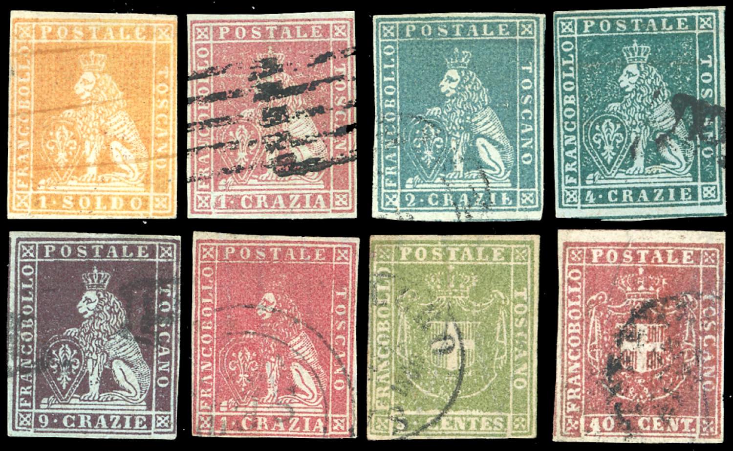 TOSCANA/GOVERNO PROVVISORIO 1851/1860 - Otto esemplari usati del periodo, tutti perfetti, ben marginati, di prima scelta. Ottimo inizio di collezione.