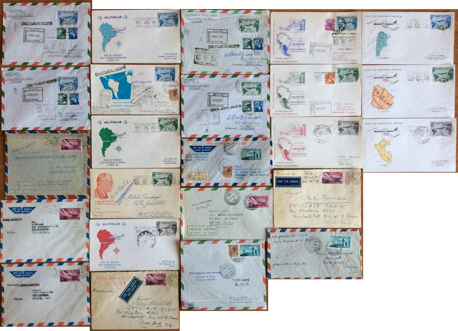 REPUBBLICA ITALIANA 1956/1961 - Piccolo insieme di aerogrammi dei "voli dei Presidenti", anche ripetuti, tutti viaggiati. Notati tanti aerogrammi affrancati con esemplari della serietta Gronchi. Ottimo per dettaglio.