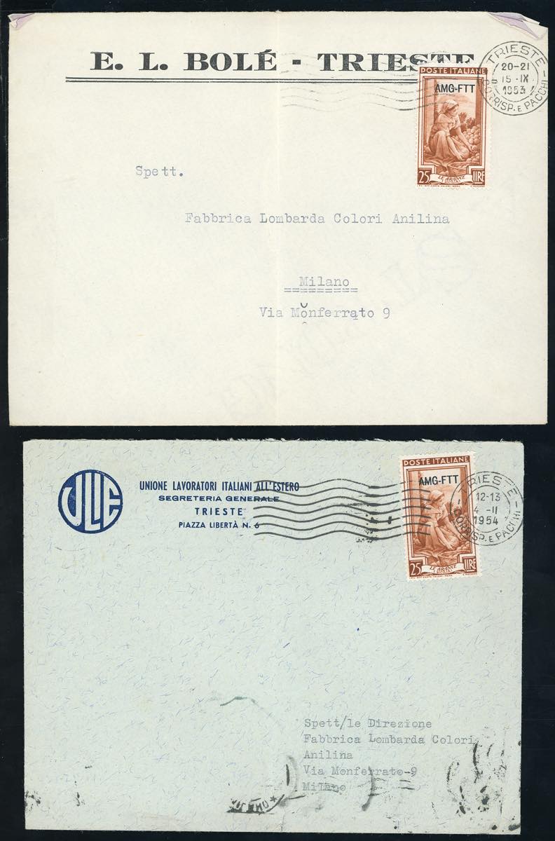 Lotto 3044 - TRIESTE A AMG-FTT 1947/1954 - Dodici lettere affrancate del ...