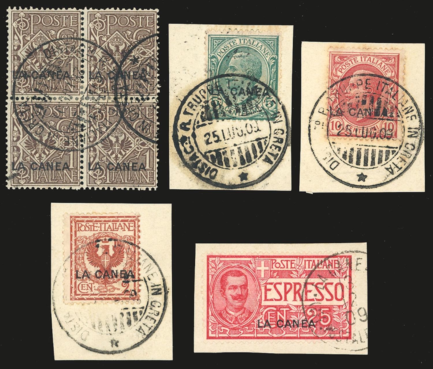 Lotto 3063 - UFFICI POSTALI ALL'ESTERO-LA CANEA 1907/1914 - Quattro ...