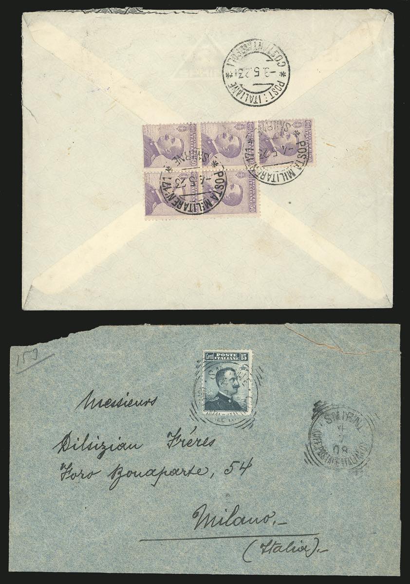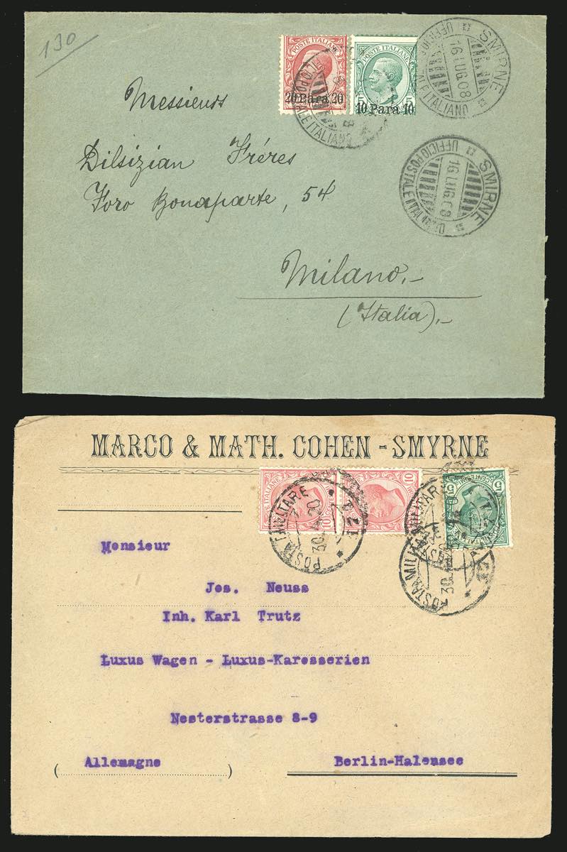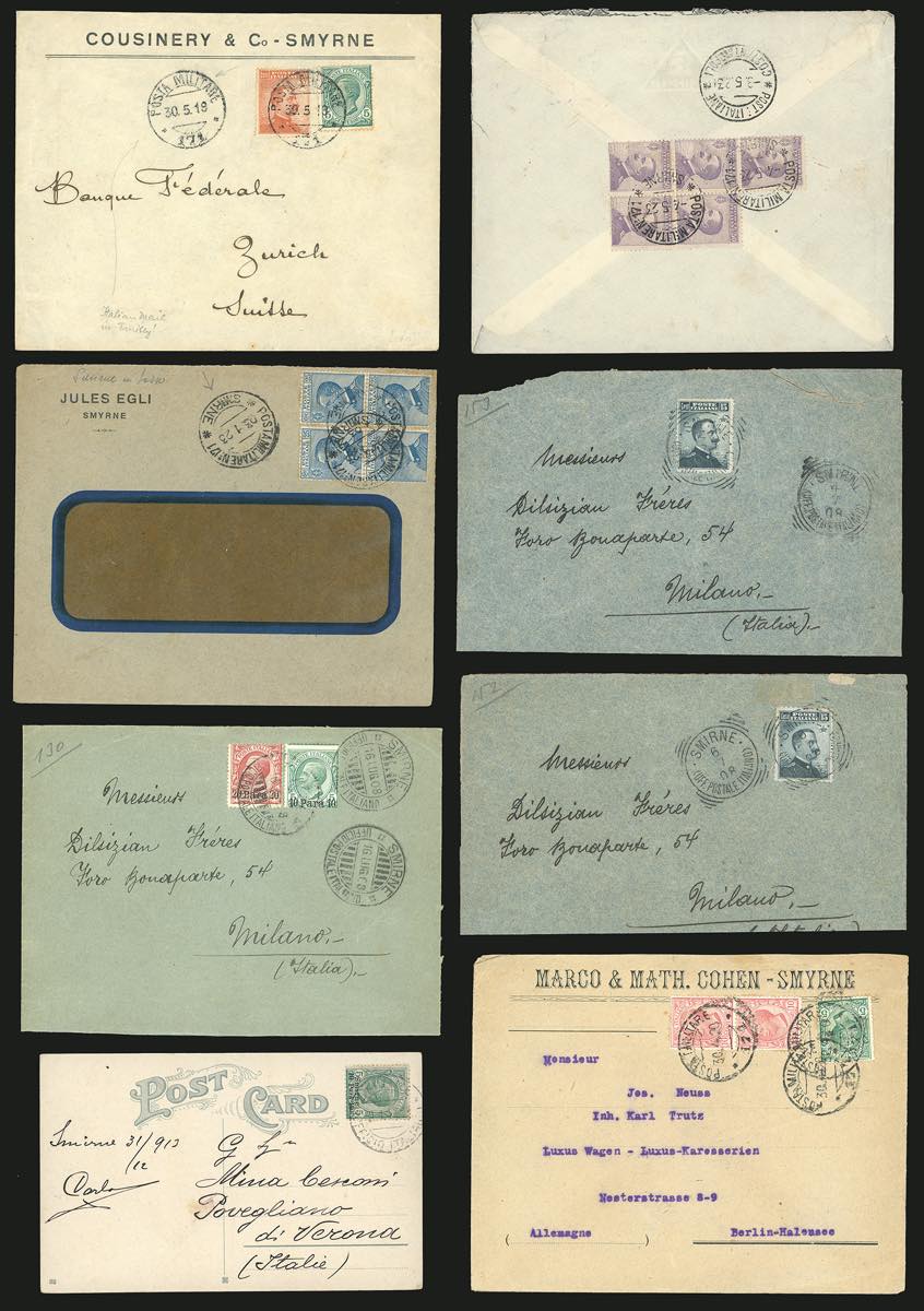 Lotto 3065 - UFFICI POSTALI ALL'ESTERO-SMIRNE 1908/1923 - Otto lettere ...