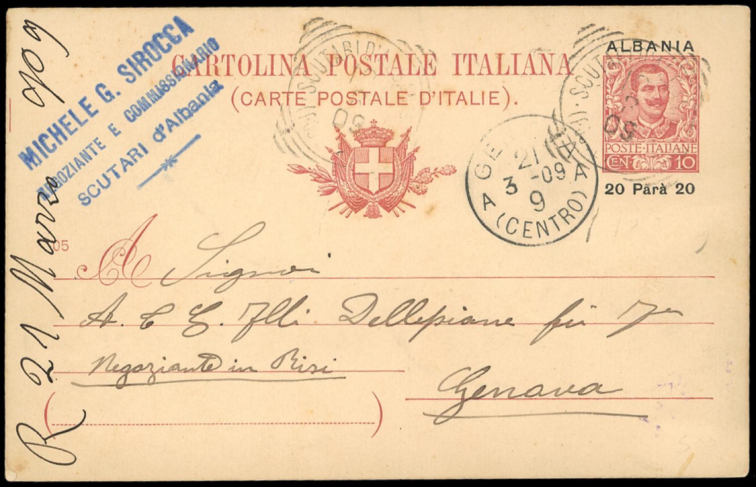 UFFICI POSTALI ESTERO-ALBANIA 1907/1910 - Quattro lettere affrancate e una cartolina postale, tutte in partenza da Scutari. Raro insieme, ... Leggi tutto