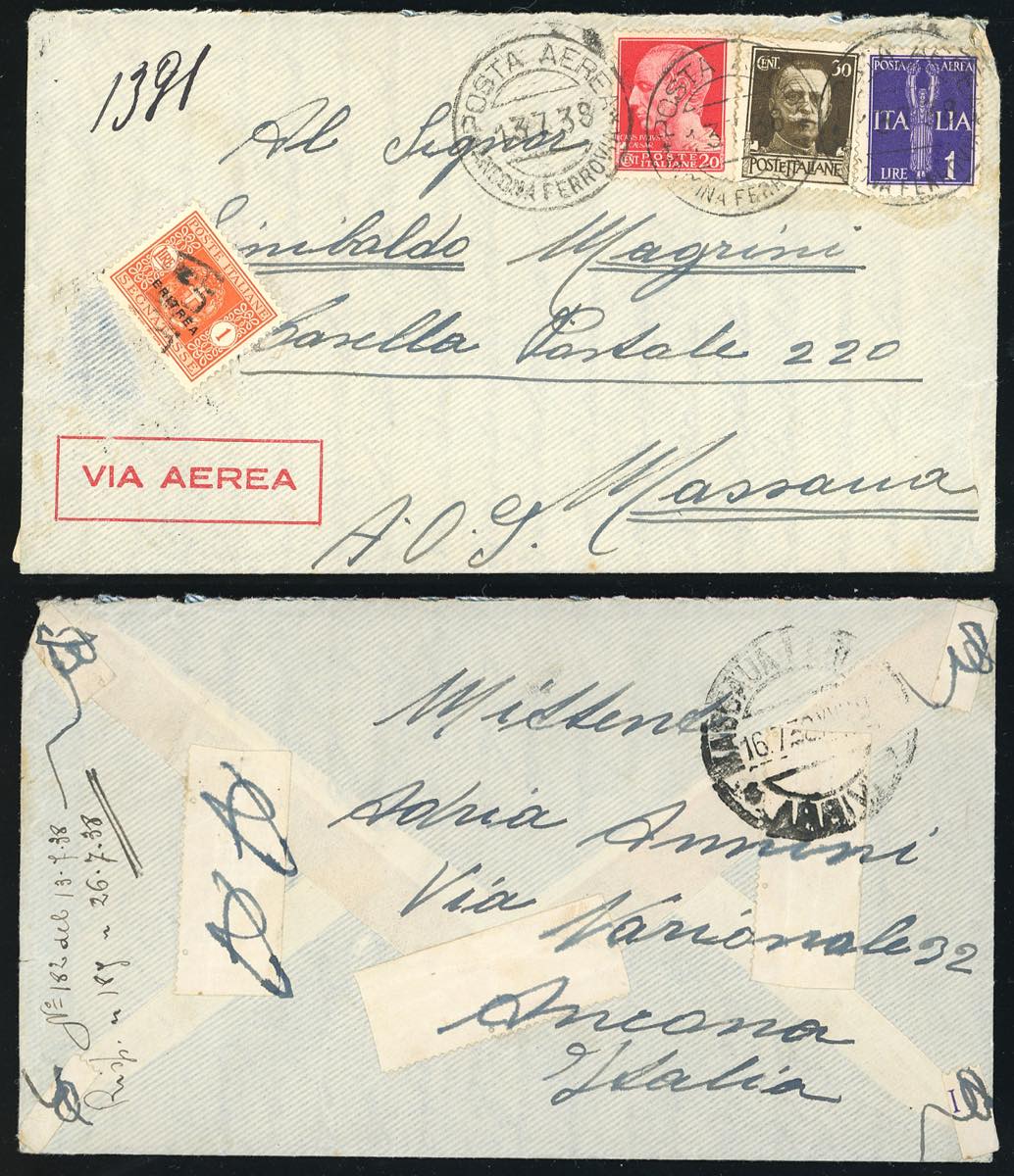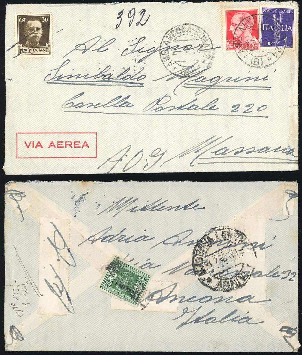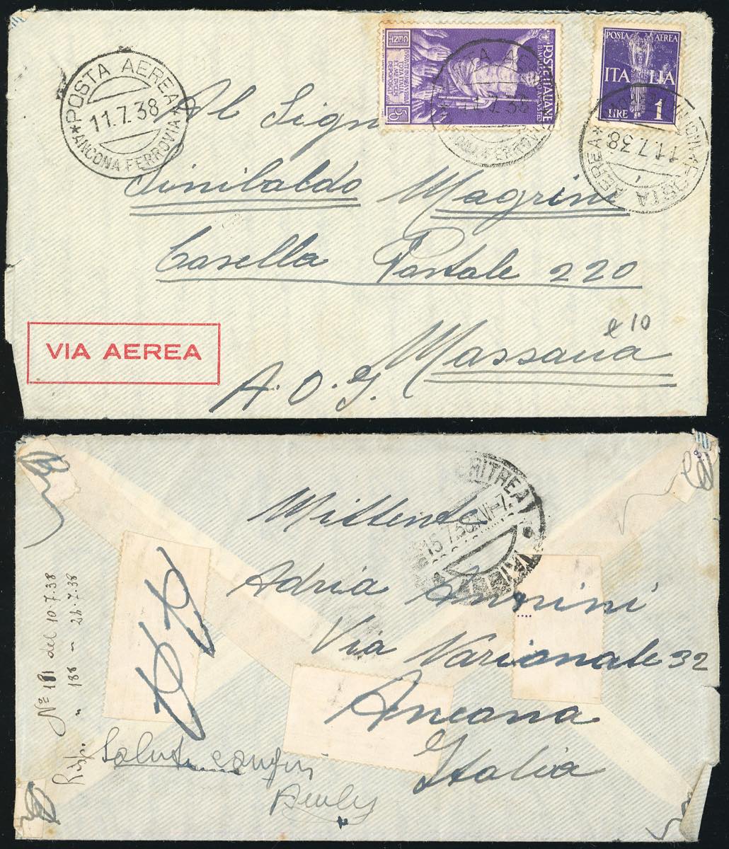 Lotto 3084 - ERITREA 1938 - Bell'insieme di 7 aerogrammi dall'Italia a ...