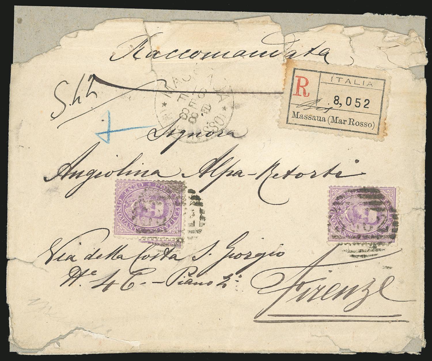 Lotto 3085 - ERITREA MASSAUA 1888/1895 - Due buste e un frontespizio in ...