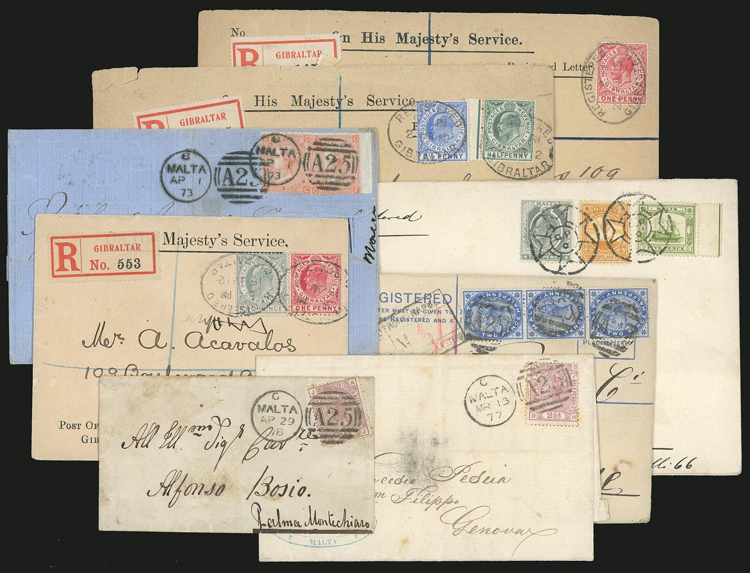 Lotto 3140 - MALTA/GIBILTERRA 1907/1917 - Otto lettere, tra cui 5 ...