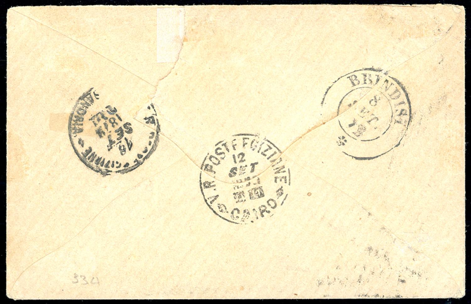 REGNO D'ITALIA-EGITTO 1872 - 40 cent. De La Rue, tiratura di Torino (T20), in affrancatura mista "a staffetta" con I piastra di Egitto ... Leggi tutto