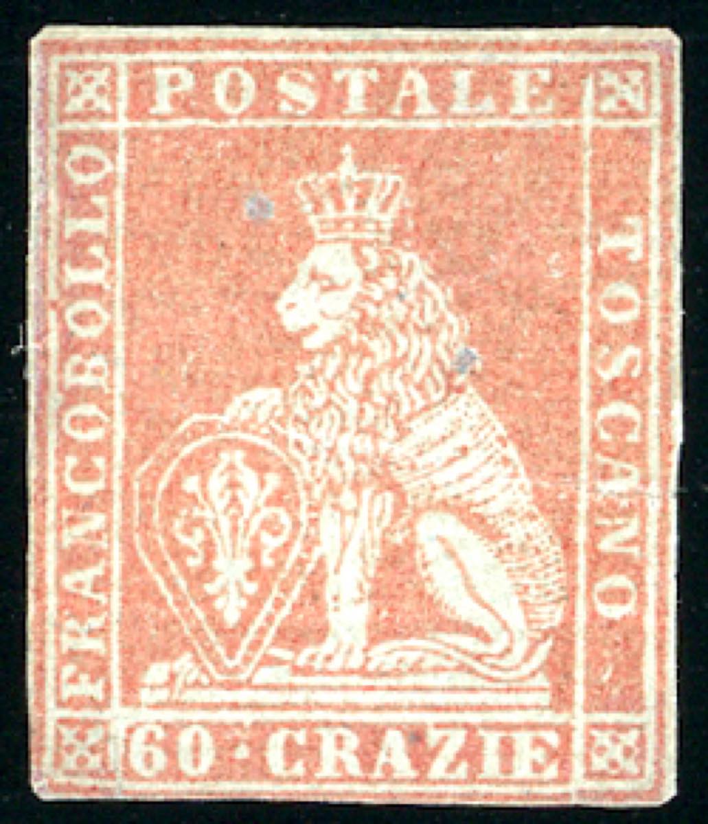 1860 - 60 crazie scarlatto su grigio (9), gomma originale, buono stato. Uno dei più rari francobolli allo stato di nuovo di tutti gli ... Leggi tutto