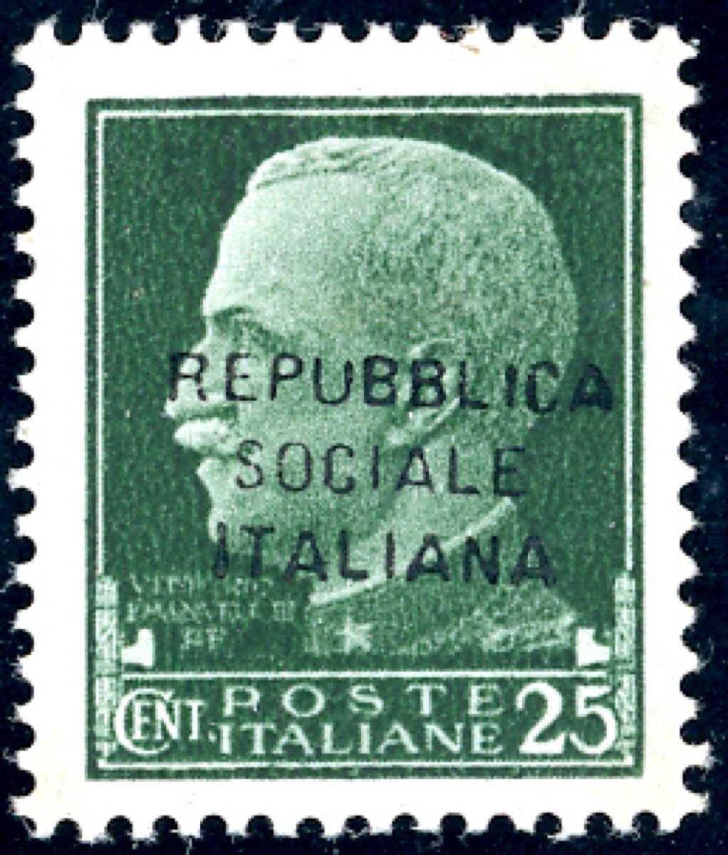 Lotto 1284 - 1944 - 25 cent. verde, falso dell'epoca, soprastampa tipo k ...