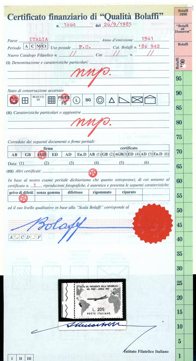 1961 - 205 lire Gronchi rosa (921), bordo di foglio, nuovo, gomma originale integra, perfetto e ben centrato. Qualità lusso. Firmato Alberto Bolaffi, cert. Finanziario Bolaffi 100%.