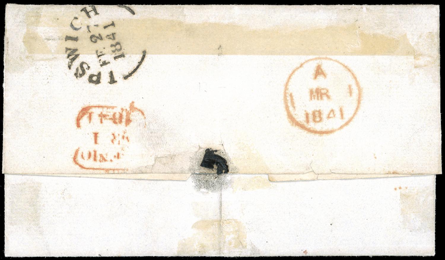 GRAN BRETAGNA 1841 - 1 p. Penny Black (1), lettere F-I, perfetto e ben marginato, su lettera da Ipswich 27/2/1841 a Hornsy, Londra. Bella. ... Leggi tutto