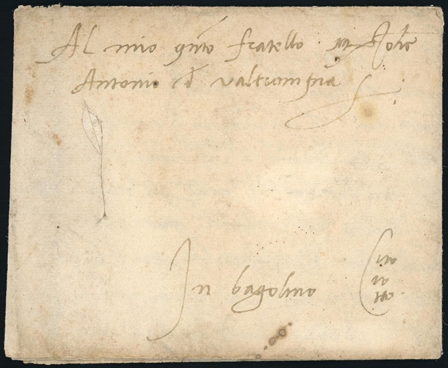 1526 - Lettera prefilatelica del 1526, indirizzata a Bagolino, con dicitura manscritta "cito", ripetuta tre volte. Non comune.