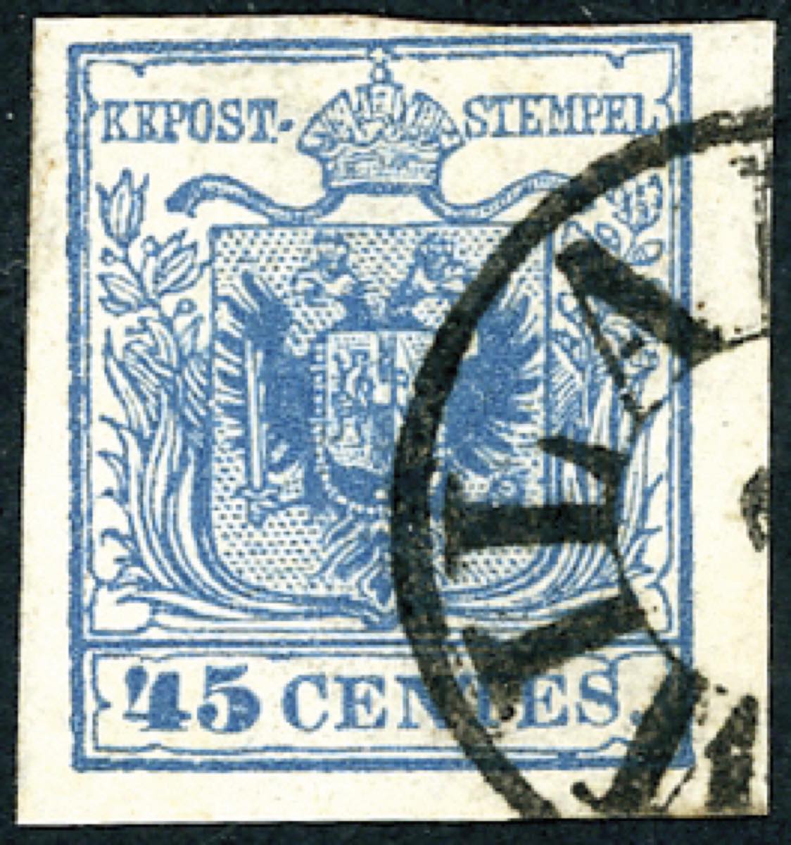 1853 - 45 cent. azzurro ardesia chiaro, II tipo, carta a mano leggermente vergata (cat. Vaccari 11CLV), perfetto, usato a Milano. Non ... Leggi tutto