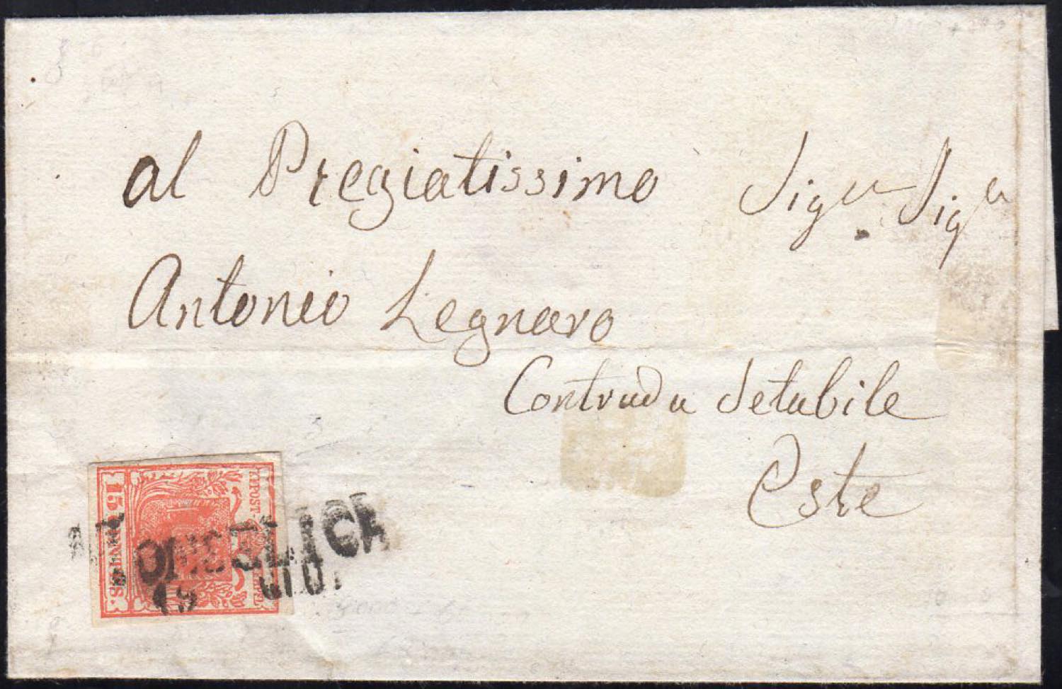 MONSELICE, SD Ig punti 7 - 15 cent. (3), perfetto, su sovracoperta del 19/6 per Este.
