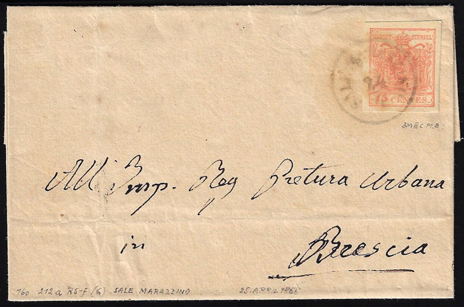 SALE MARAZZINO, C1 punti 7 - 15 cent. (20), perfetto, su sovracoperta di lettera del 24/4 per Brescia.