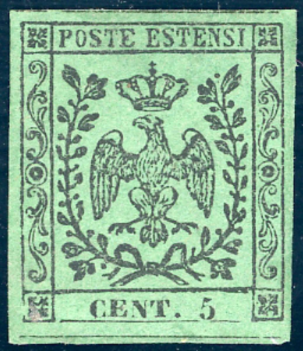 Lotto 117 - 1852 - 5 cent. verde, senza punto dopo la cifra (1), nuovo ...
