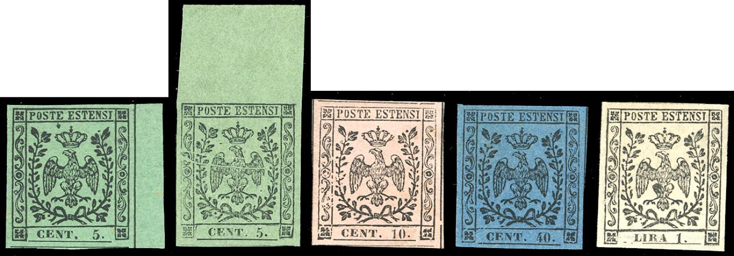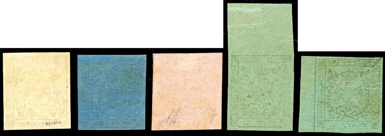 1852/55 - Emissione con punto dopo le cifre, serie completa (7/11), gomma originale, integra per i n. 8 e 10, perfetti. Splendidi. Cert. Finanziario Bolaffi.