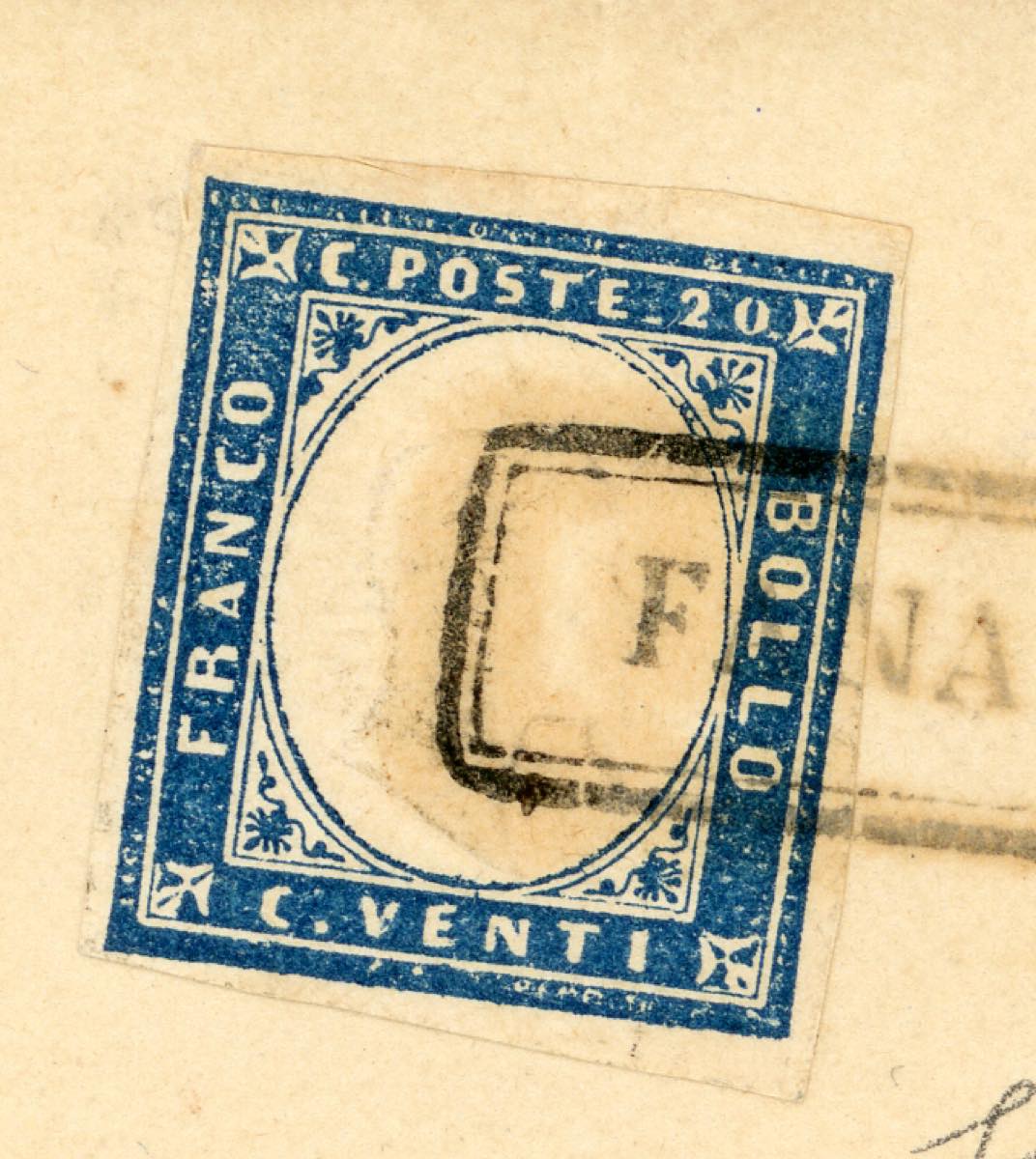 FANANO, cartella punti 13 - 20 cent. (Sardegna 15D), perfetto, su sovracoperta di lettera per Nonantola 6/7/1861. Splendida! Ferrario.
