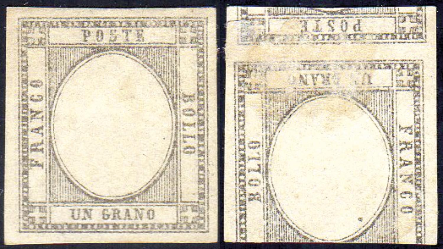 PROVE 1861 - 1 grano nero (19), prova di macchina con stampa recto-verso, senza effigie, nuova senza gomma, perfetta.