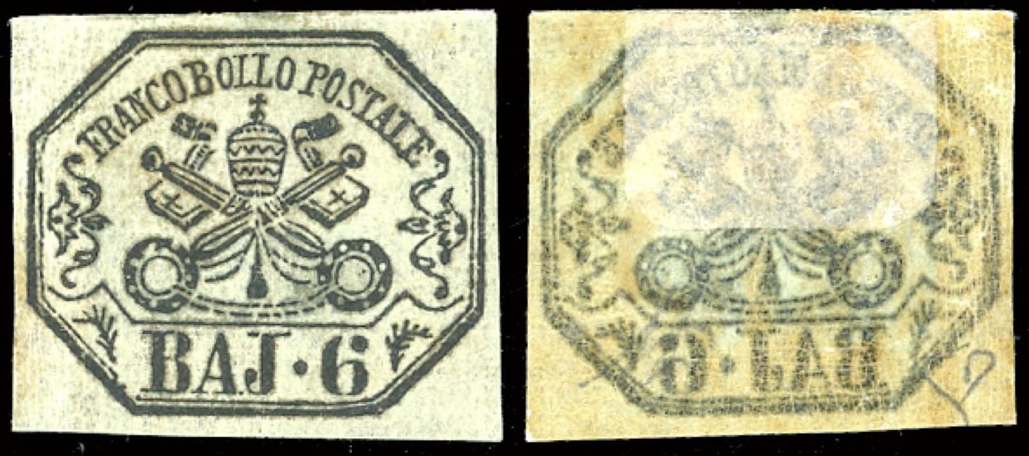 1852 - 6 baj grigio verdastro, decalco (7db), gomma originale, perfetto. E.Diena. Ex coll. Imperato.