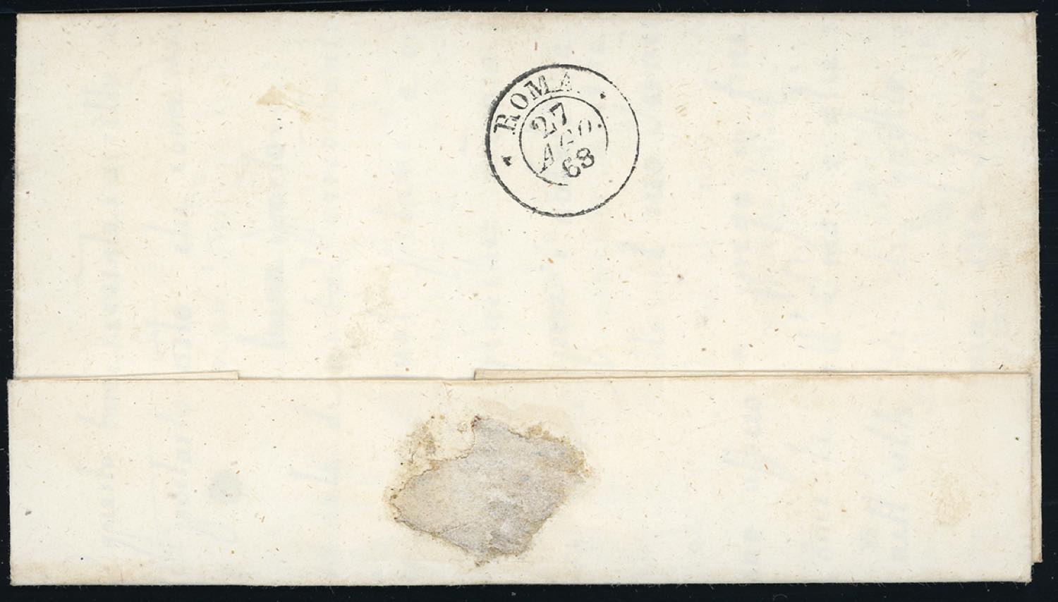 ACQUAPENDENTE, bollo di tassa "20" unico annullatore, punti R1 - 1 baj (2), perfetto, al verso di lettera in porto assegnato del 27/7/1854 ... Leggi tutto