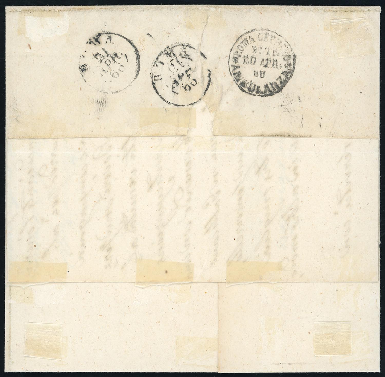 GALLICANO, punti R1 - 2 baj (3Ab), perfetto, su lettera del 20/4/1866 per Roma. TRE SOLE LETTERE NOTE, rarità del settore, di ottima ... Leggi tutto