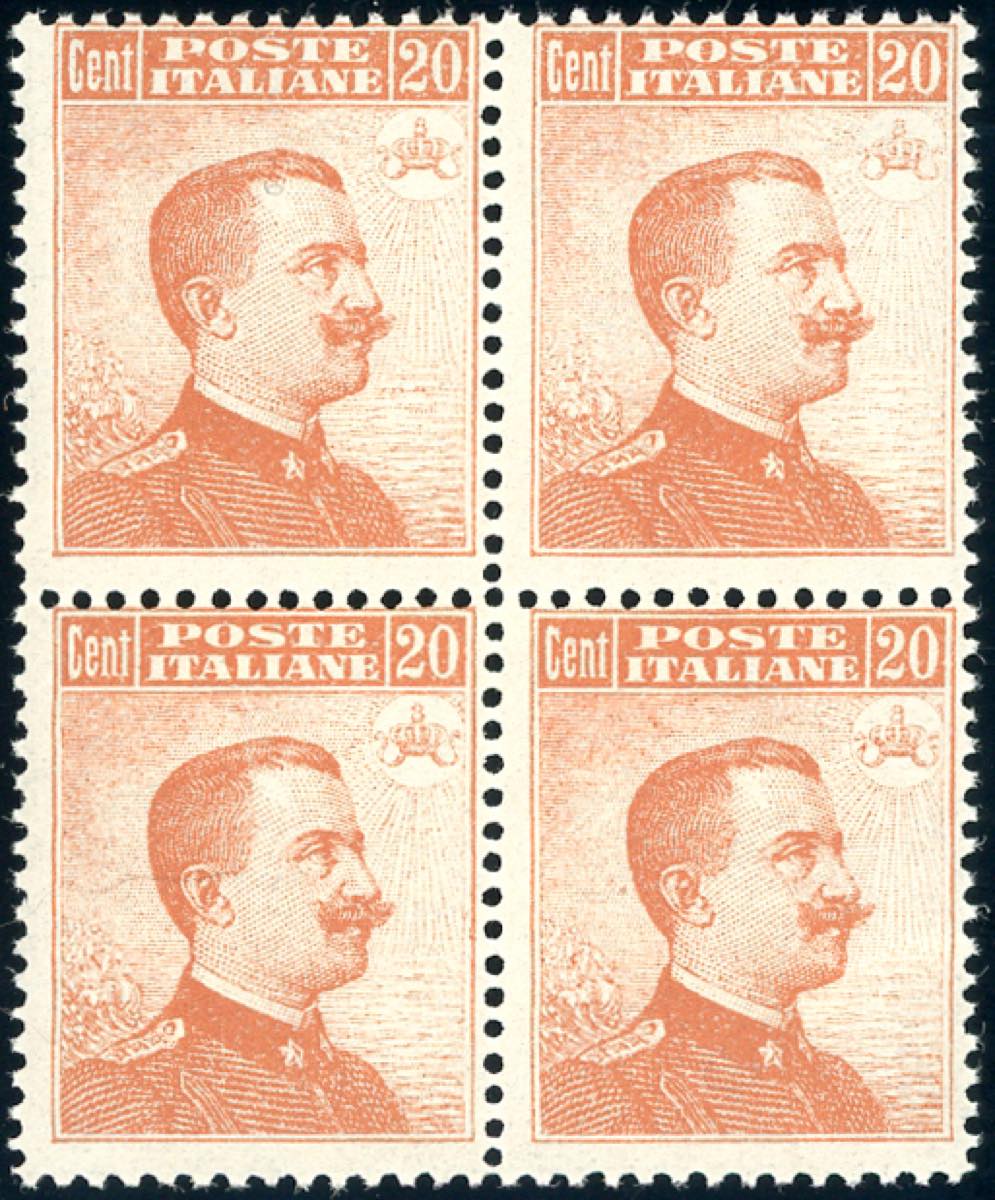 Lotto 1073 - 1916 - 20 cent. Michetti, senza filigrana (107), blocco di ...