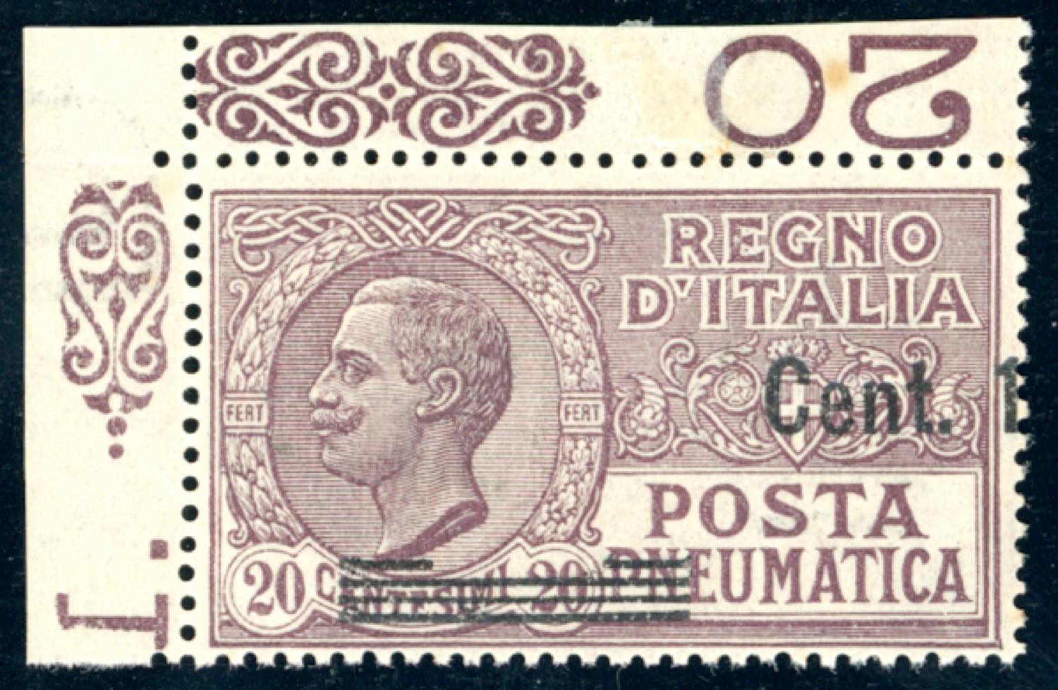 Lotto 1216 - 1927 - 15 cent. su 20 cent., solo "Cent.1" e sbarrette in ...