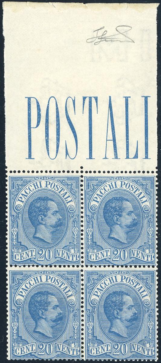 Lotto 1220 - 1884 - 20 cent. Umberto I (2), discreta centratura, blocco ...