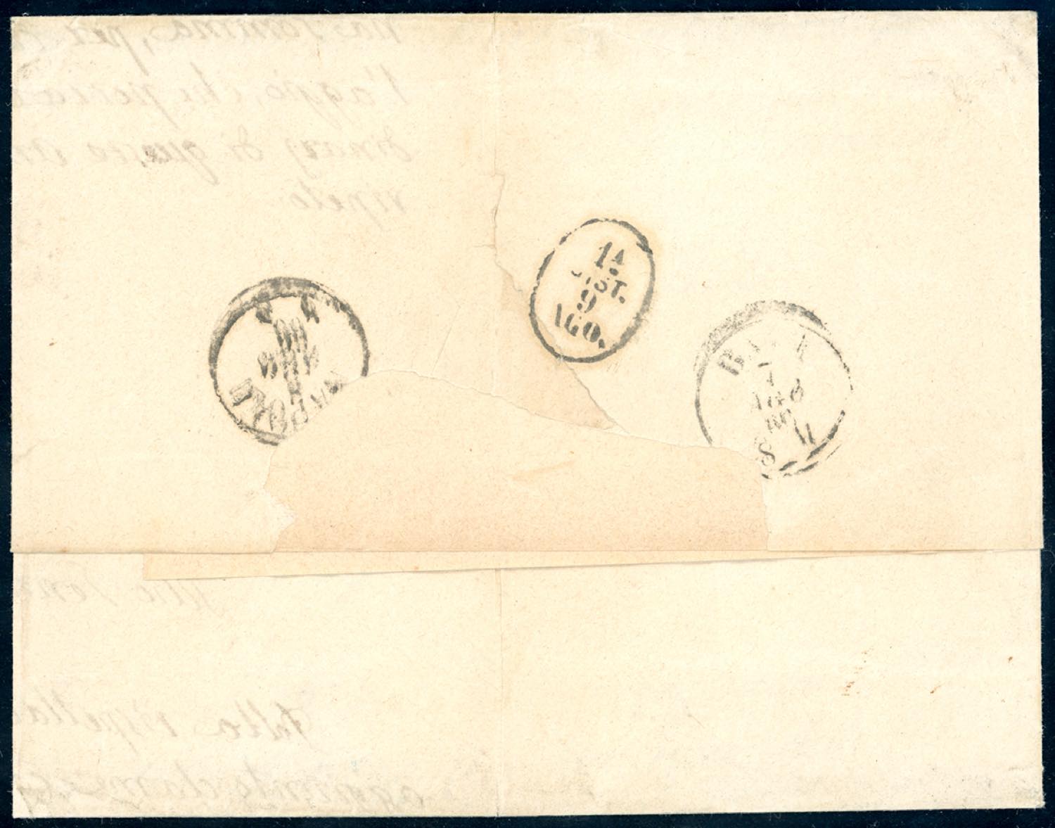 MOTTOLA, manoscritto - 20 cent. su 15 cent. Ferro di cavallo, II tipo (24), striscia di quattro, buono stato, su lettera del 6/8/1866, bollo di partenza manoscritto a tratti incrociati di penna per annullare i francobolli, a Napoli. Rara e molto fresca. Vaccari, Raybaudi, cert. Sorani.(cat. Sassone € 5.500 per la sola affrancatura, senza considerare il raro annullo dell'ufficio postale aperto nel 1866).