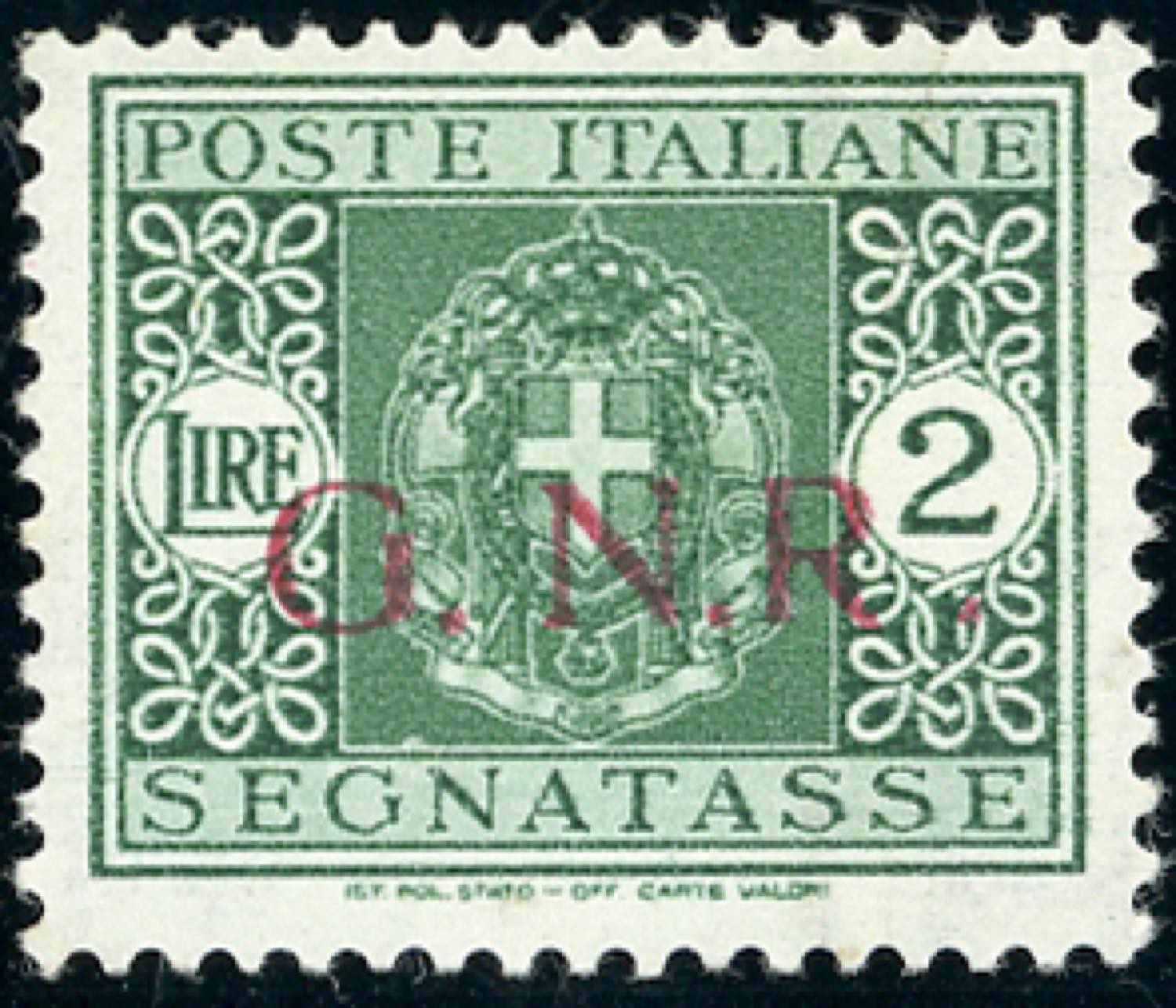 Lotto 1415 - 1943 - 2 lire soprastampa G.N.R. di Brescia, "R" accostata ...