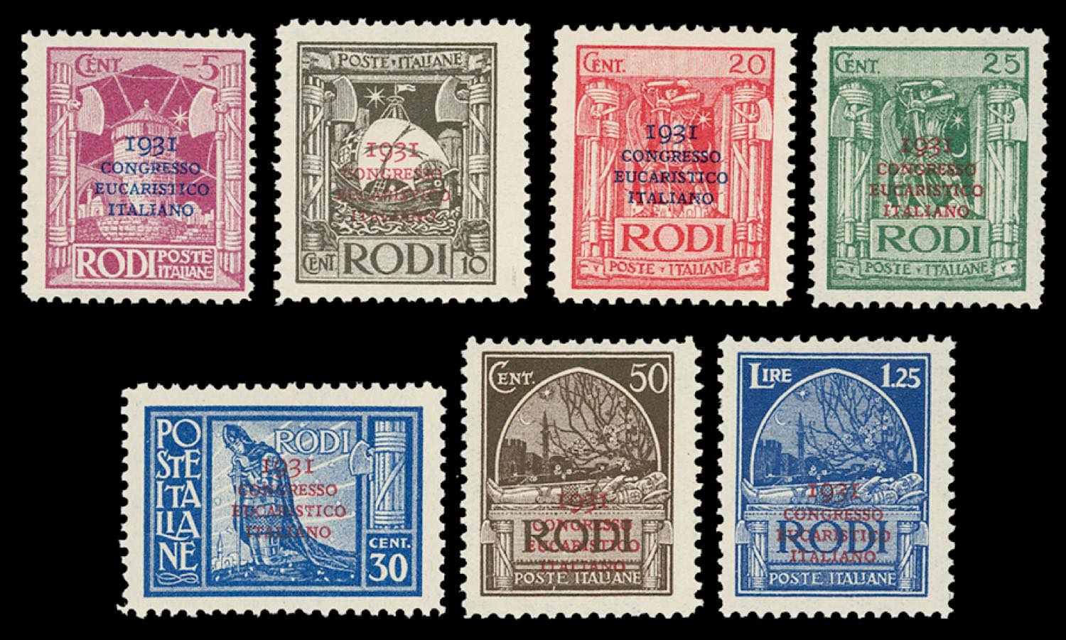 1931 - Congresso Eucaristico, serie completa (30/36), gomma originale integra, perfetti e di ottima qualità.