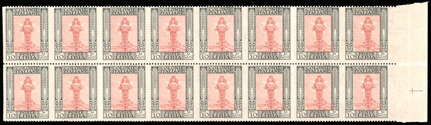 1921 - 10 cent. Pittorica, non dentellato verticalmente (24m), blocco di sedici esemplari, bordo di foglio, gomma integra, perfetto.