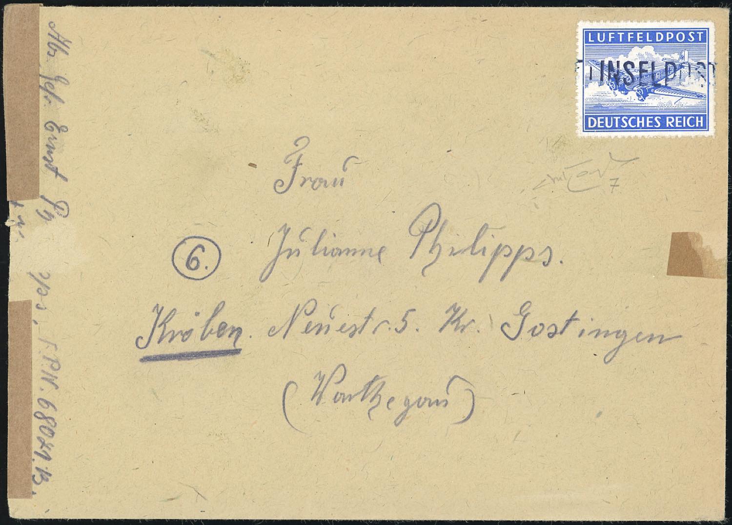 OCCUPAZIONE TEDESCA EGEO 1945 - Inselpost, emissione di Leros (7), perfetto, non annullato su busta inviata dalla Feldpost n. 68071B. Cert. Mogler.