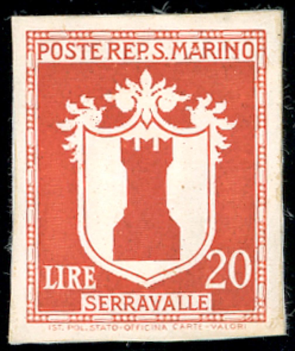 1945 - 20 lire Stemmi (292), prova di colore differente da quello adottato su cartoncino, non dentellata, senza gomma come sempre, ... Leggi tutto