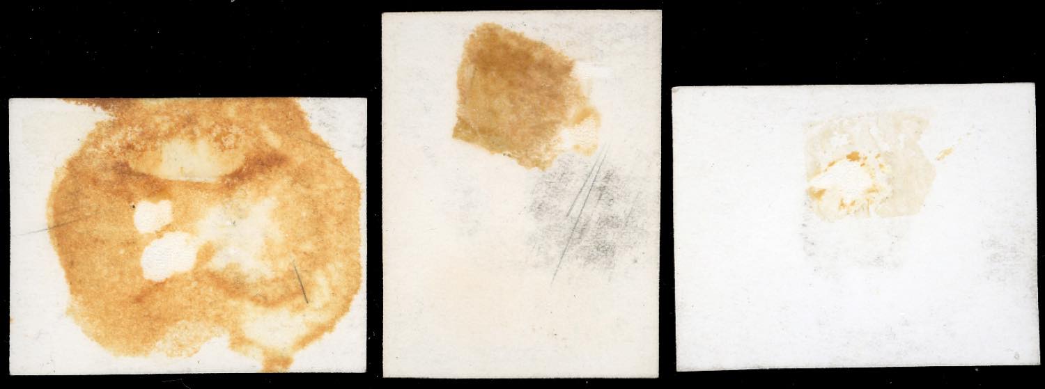 1947 - 1 lira, 2 lire, 3 lire Roosvelt (61/62), saggi fotografici di Corrado Mezzana con successiva applicazione degli ovali con le effigi. Il valore nominale delle prove risulta abraso e modificato all'epoca; il saggio da 2 lire è stato parzialmente colorato a tempera e non corrisponde al francobollo successivamente adottato; il 3 lire, valore che non è mai stato emesso per questa serie, è stato invece ottenuto dal saggio fotografico del 50 lire. Insieme unico e di grande fascino.