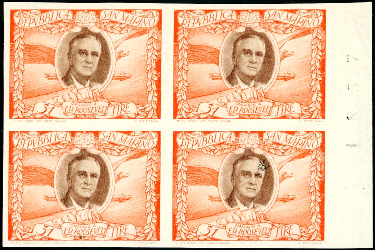Lotto 2254 - 1947 - 31 lire Roosvelt, non dentellato (65b), blocco di ...