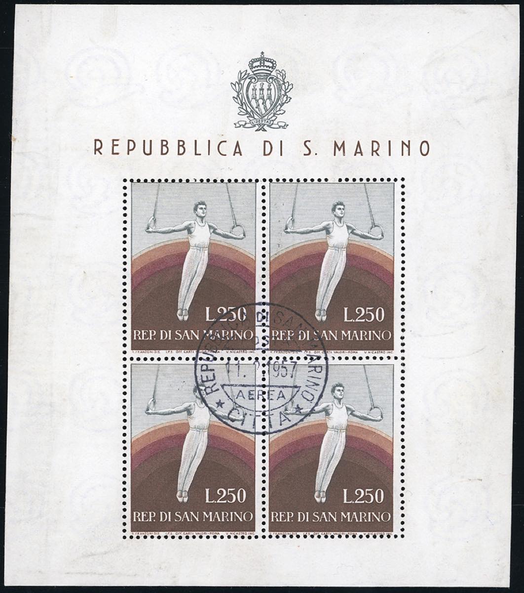 1955 - 250 lire Ginnasta (17), foglietto, usato, perfetto. Cert. Diena.