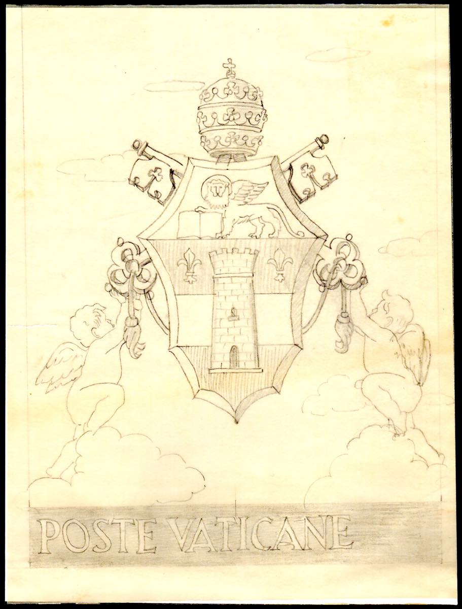 1959 - Bozzetto a matita di Grassellini, su carta velina, del soggetto dei francobolli da 35 e 100 lire di Giovanni XXIII. Bello e raro.