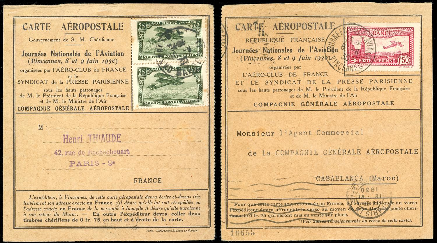 FRANCIA/MAROCCO 1930 - Redirected with additional franking. First day of issue of France's stamp.