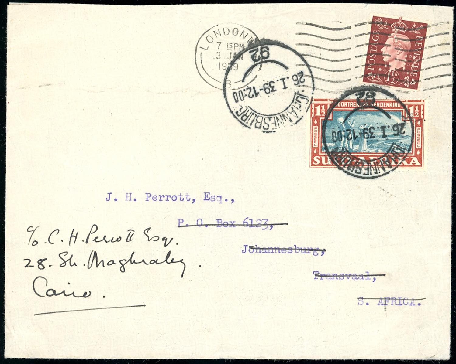 GRAN BRETAGNA/SOUTH AFRICA/EGITTO 1939 - Redirected with additional franking.