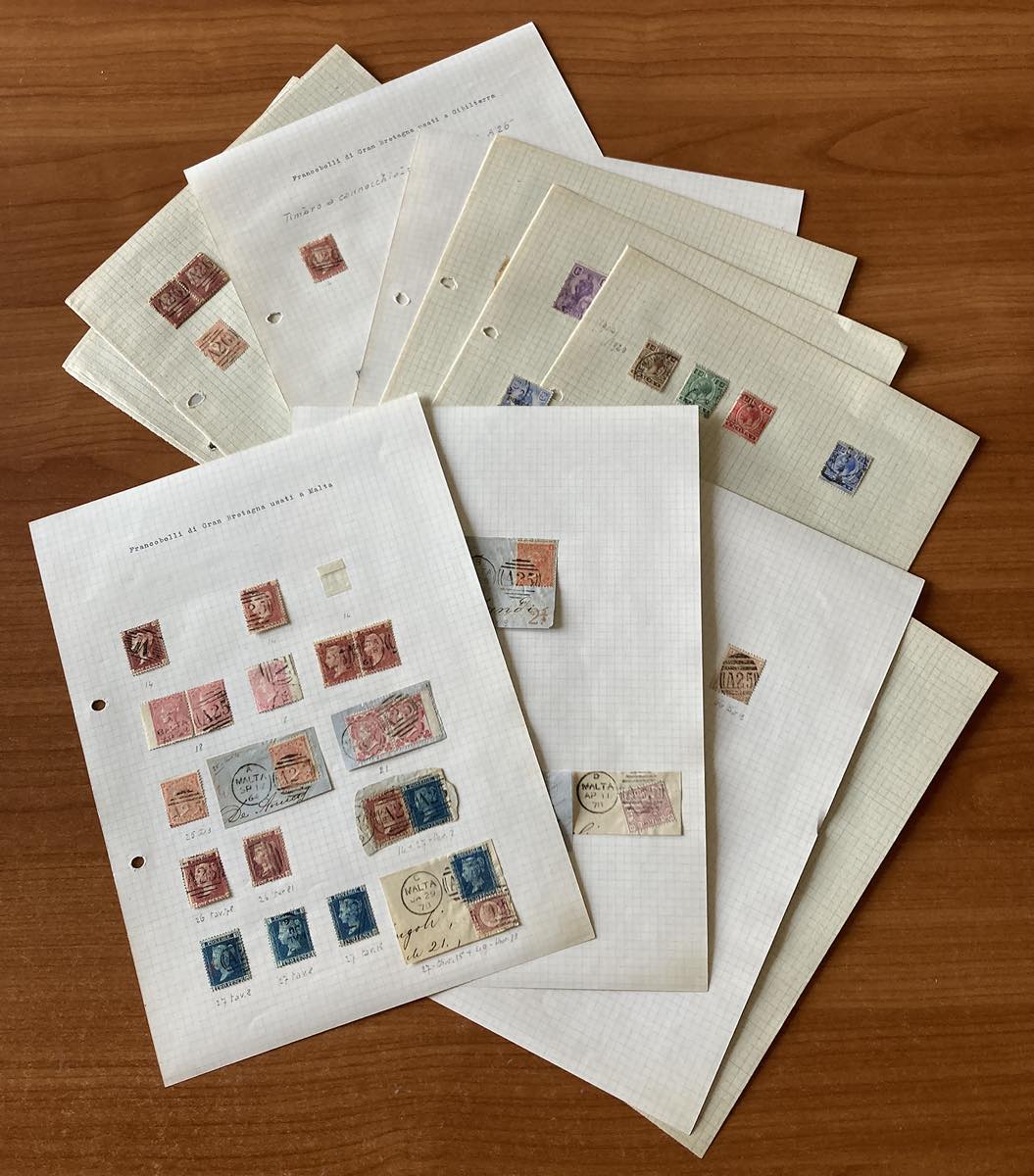MALTA/GIBILTERRA/CIPRO 1860/1940 - Bell'insieme di numerosi esemplari del periodo, usati o su frammento, montati in pagine d'album artigianali.