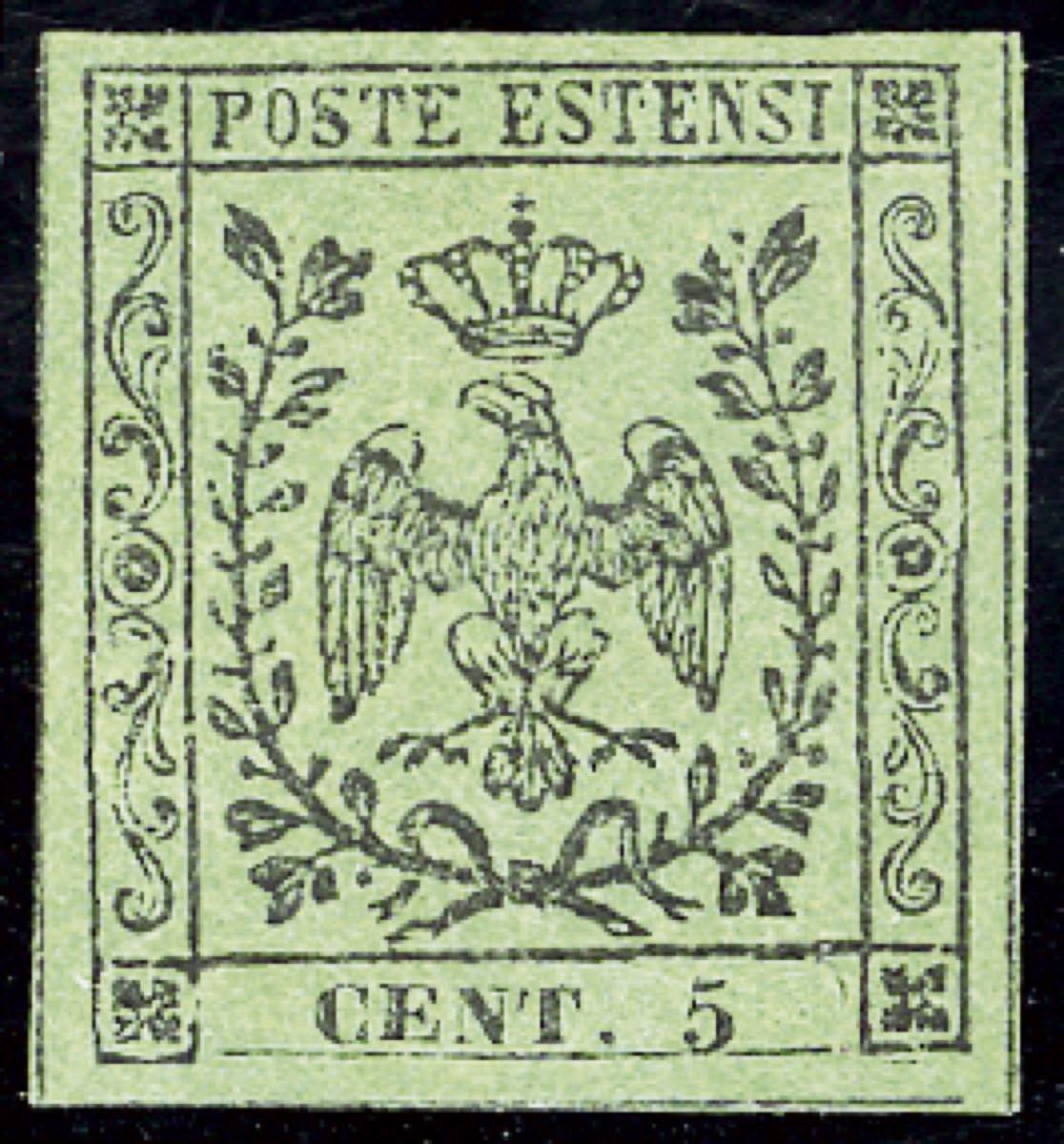 1852 - 5 cent. verde, senza punto dopo le cifre (1), gomma originale integra, perfetto. Splendido e raro in queste condizioni. Cert. ... Leggi tutto