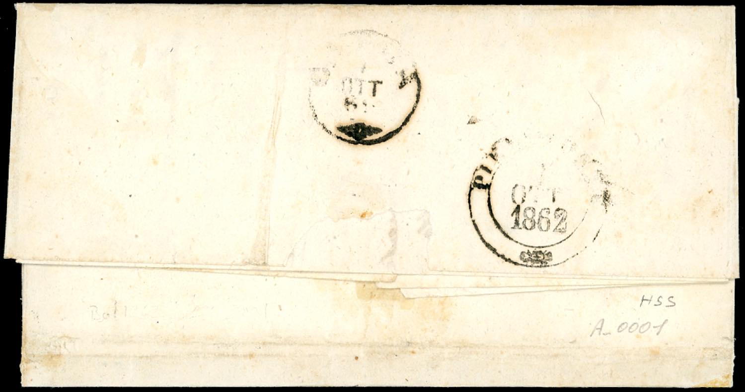 1862 - 10 cent. bruno (1c), bordo di foglio a destra, separato in basso con le forbici, su lettera da Migliano 1/10/1862 a Capriata. PRIMO ... Leggi tutto