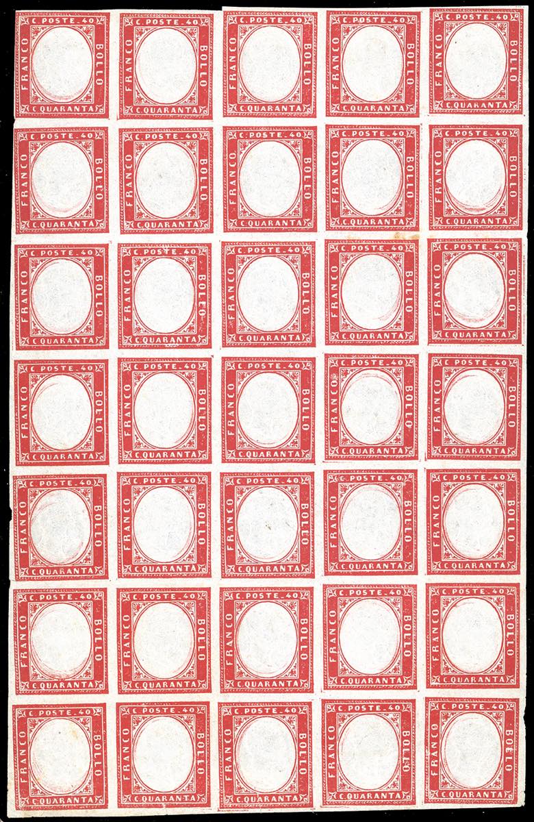 Lotto 710 - 1861 - 40 cent. rosso carminio (16D), blocco di 35 ...