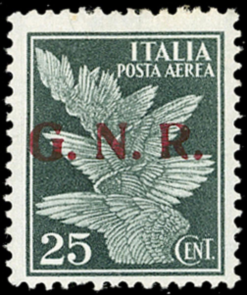 Lotto 1314 - 1943 - 25 cent. soprastampa G.N.R. di Brescia, II tipo ...
