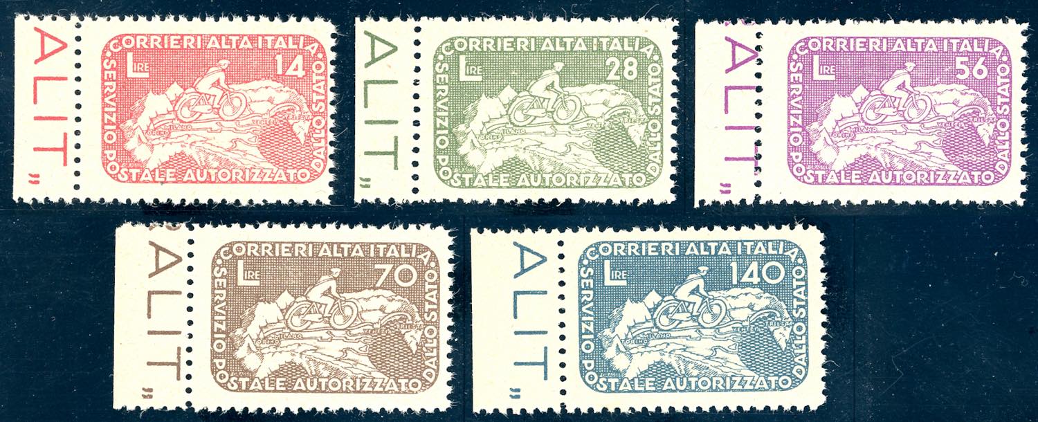 CORALIT 1945 - Ciclista, serie completa (8/12), bordo di foglio, gomma originale integra, perfetti. Molto freschi. Ferrario.