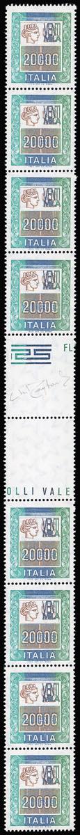1987 - 20.000 lire Alti Valori (1442B), striscia verticale di otto divisi da interspazio di gruppo, nuova, gomma originale integra, ... Leggi tutto