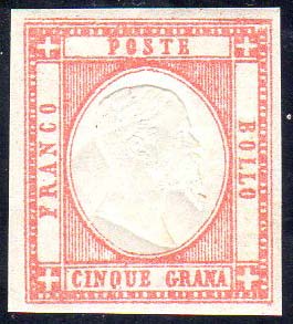 Lotto 382 - 1861 - 5 grana vermiglio, filetto di inquadratura in alto ...